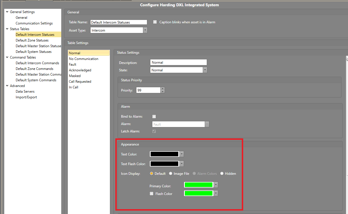 flashing behavior depending on how the status is configured in that specific