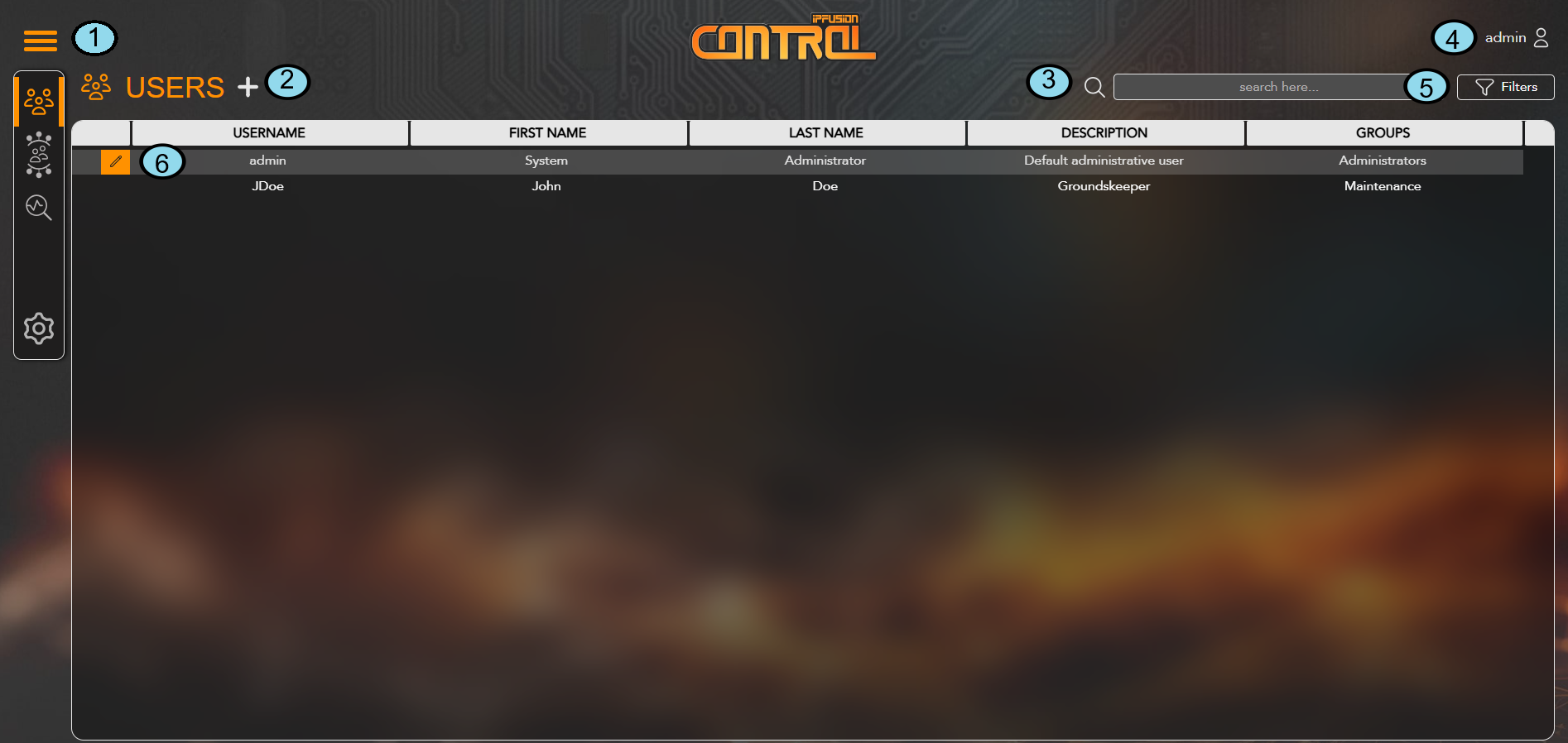 | 5. Filters | Click the Filter button to sort users by their Active status. |