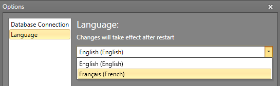 The language used on labels and controls in the Reporting application can be set to either english or french,