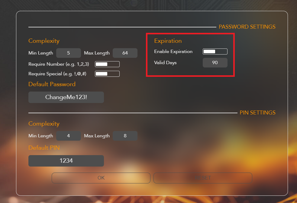 Enable Password or PIN Expiry