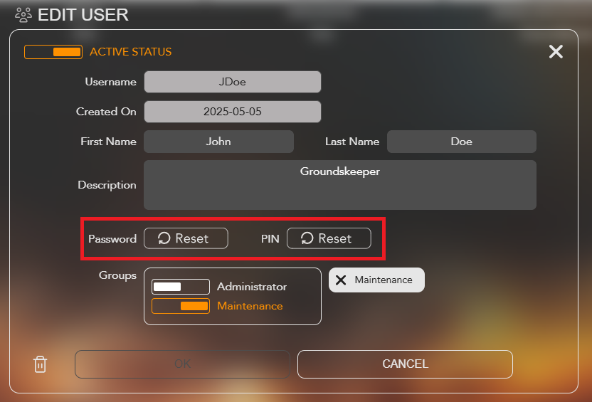 Users + Dashboard Password or PIN Reset