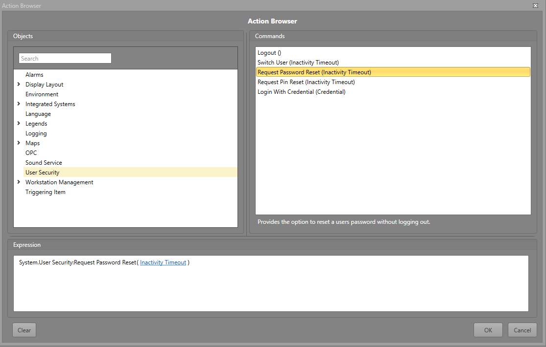 Workflow Command Password or PIN Reset