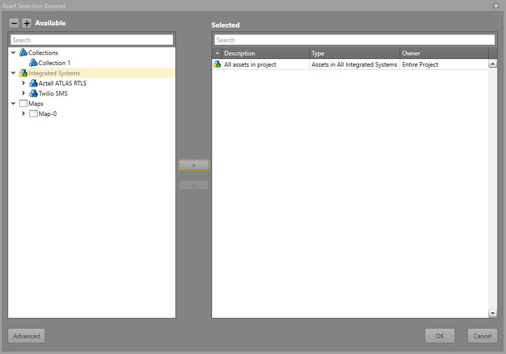 Collections are available within the Action Browser as a Command Parameter. To access Collections available in the project, find the Asset Selection Browser. When accessing Collections through this browser, you will be able to select a Collection that has already been defined. The hierarchy is displayed as follows: