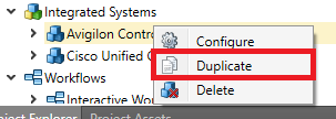 Integrated Systems can be duplicated in your project. This is generally used when you have an Integrated System with different, but similar configurations required. For example, a system where you have multiple communication servers, yet only one is allowed in the Integrated System configuration.