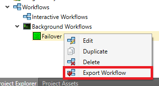 Workflows can be exported in order to be imported into other projects. Exporting a Workflow creates a Workflow Template file (.wrkt).