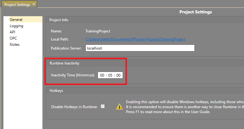 Inactivity Time is a timer that counts down during periods of time where there is no activity. It can be configured in Project Settings.