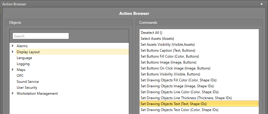 The text value for a label drawing object can be set in Designer and changed in Runtime using Workflows. This can be used to display messages to the Runtime operator.