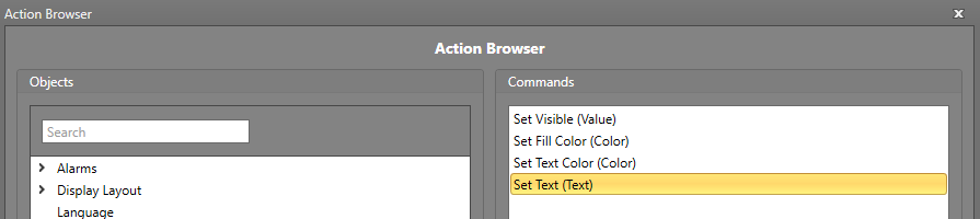 To change the Text property of a label object, you will first require an Action block in your Workflow. Drag and drop one into the work area if required.