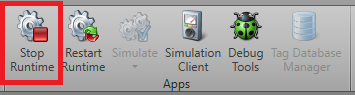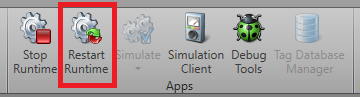 Runtime can be restarted from Designer. This option becomes available after clicking the Run button. This is useful if you want to test changes without having to stop Runtime.