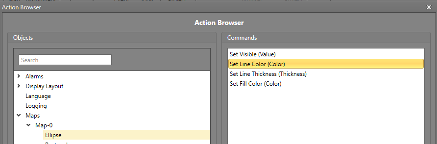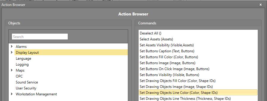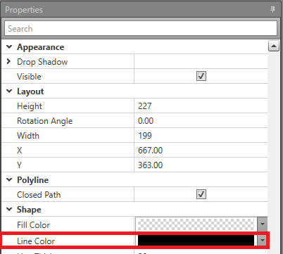 The line color for shapes can be set in Designer and changed in Runtime using Workflows. This can be used to visually communicate information to the Runtime operator. The line color can be changed on these shapes: ellipse, line, polygon, polyline, and rectangle.
