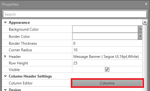 In the Properties, click the Columns