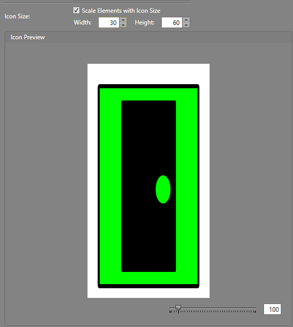 Custom asset types in PLC Devices can have their icons resized. In the event you have already created an asset type with all of its elements, you can have the elements automatically be resized with the icon. Elements will be scaled and their X/Y coordinates updated to match the new sizing for the icon.