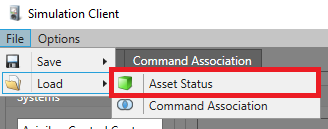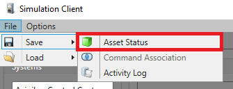 In Simulation mode, asset states can be changed from the Simulation client. The configured statuses can be saved so they may later be loaded into Simulation mode. This assists in maintaining a specific configuration when you need to use Simulation mode.