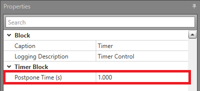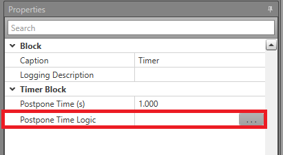 Note: Only one time delay value is permitted, either a value in the Postpone Time or Postpone Time Logic field. - In Properties, click the Postpone Time Logic button or double-click the Timer block.