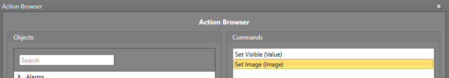 To change the Image property of image objects, you will first require an Action block in your Workflow. Drag and drop one into the work area if required.