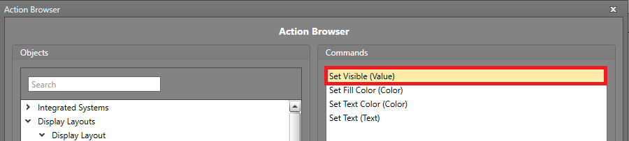 - In the Commands pane, select Set Drawing Objects Visibility.